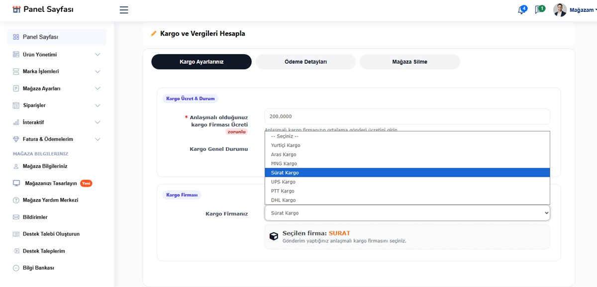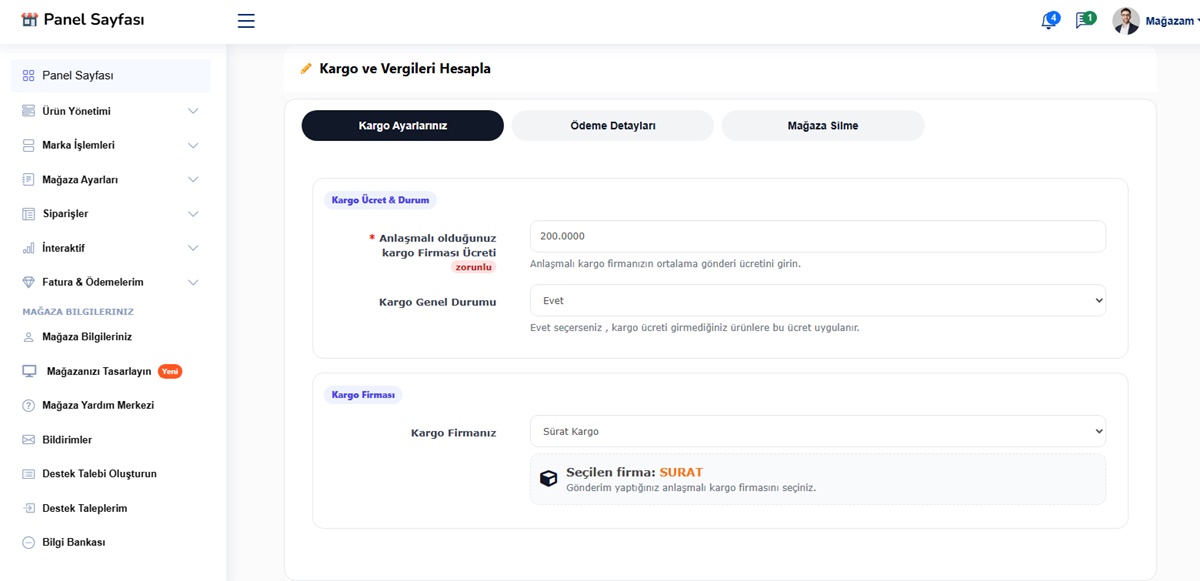- Satıcılar, kendi kargo ayarlarını belirleyebilir.