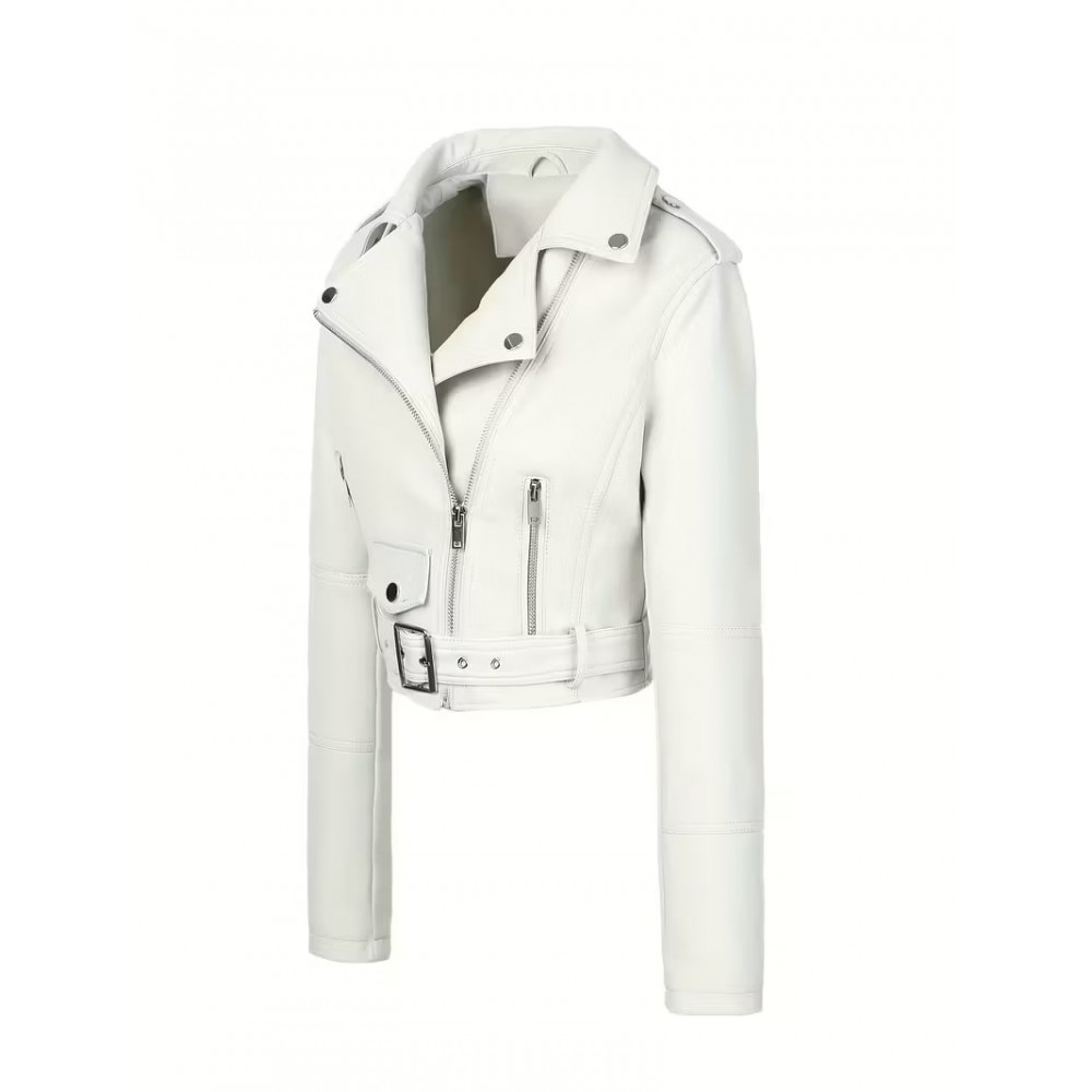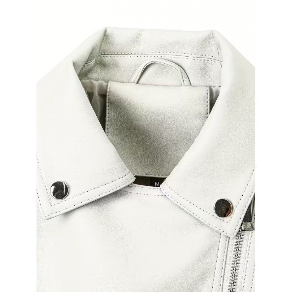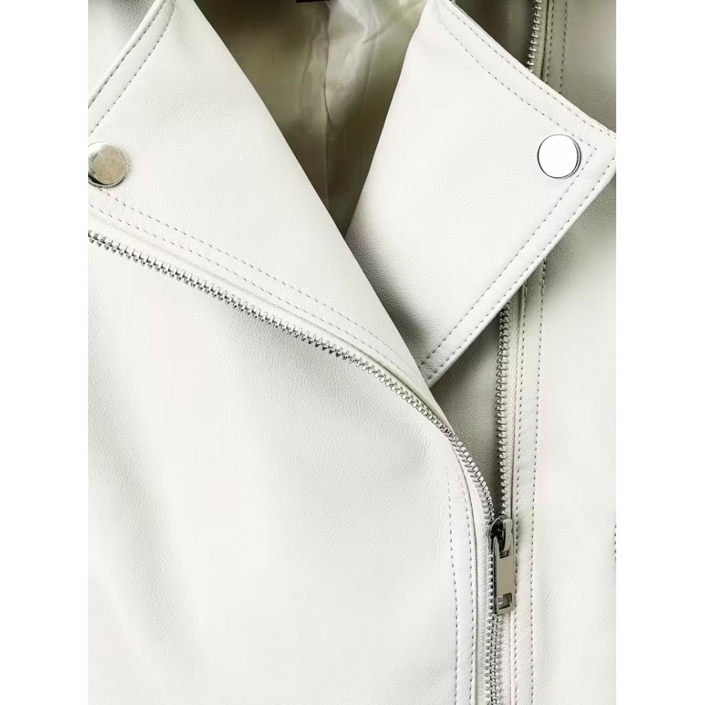 Fermuar Kapanışlı Beyaz Şık Motosiklet Ceketi 251014125918