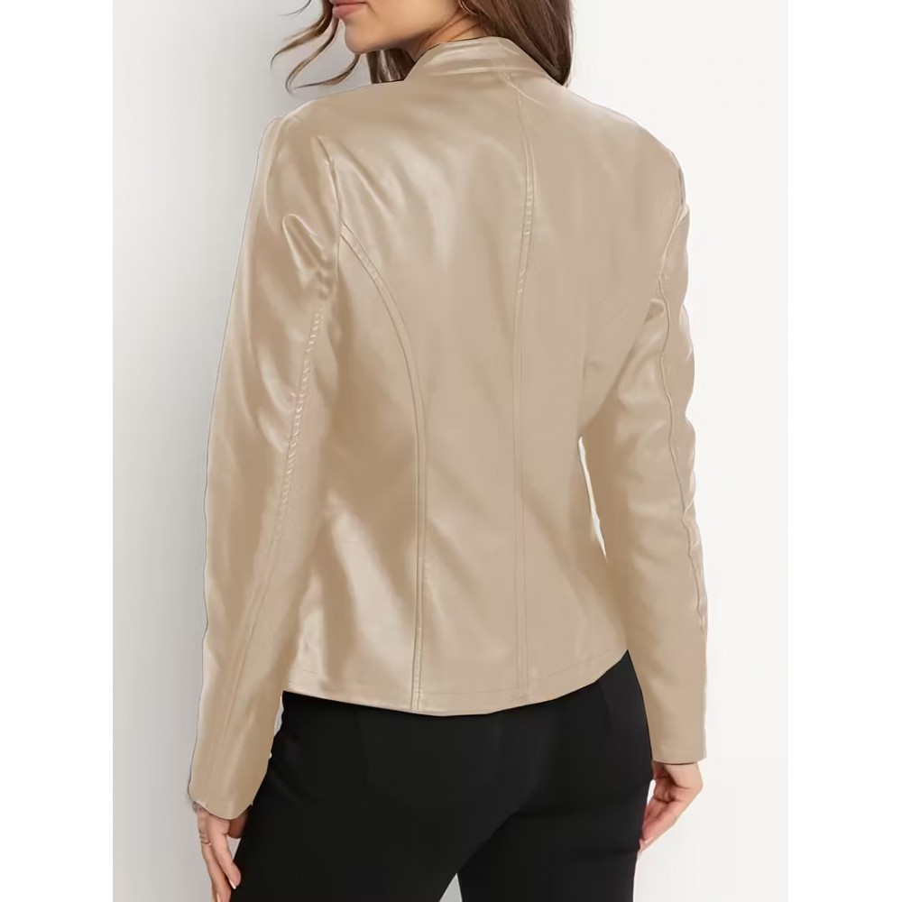 Deri Ceket - Haki Tam Fermuarlı Uzun Kollu Motosiklet Montu 251014115718