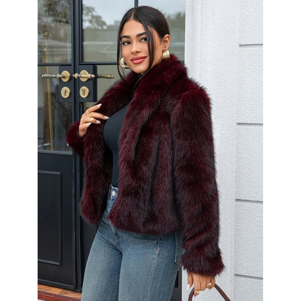 Koyu Kırmızı Suni Kürk Ceket 251023112452