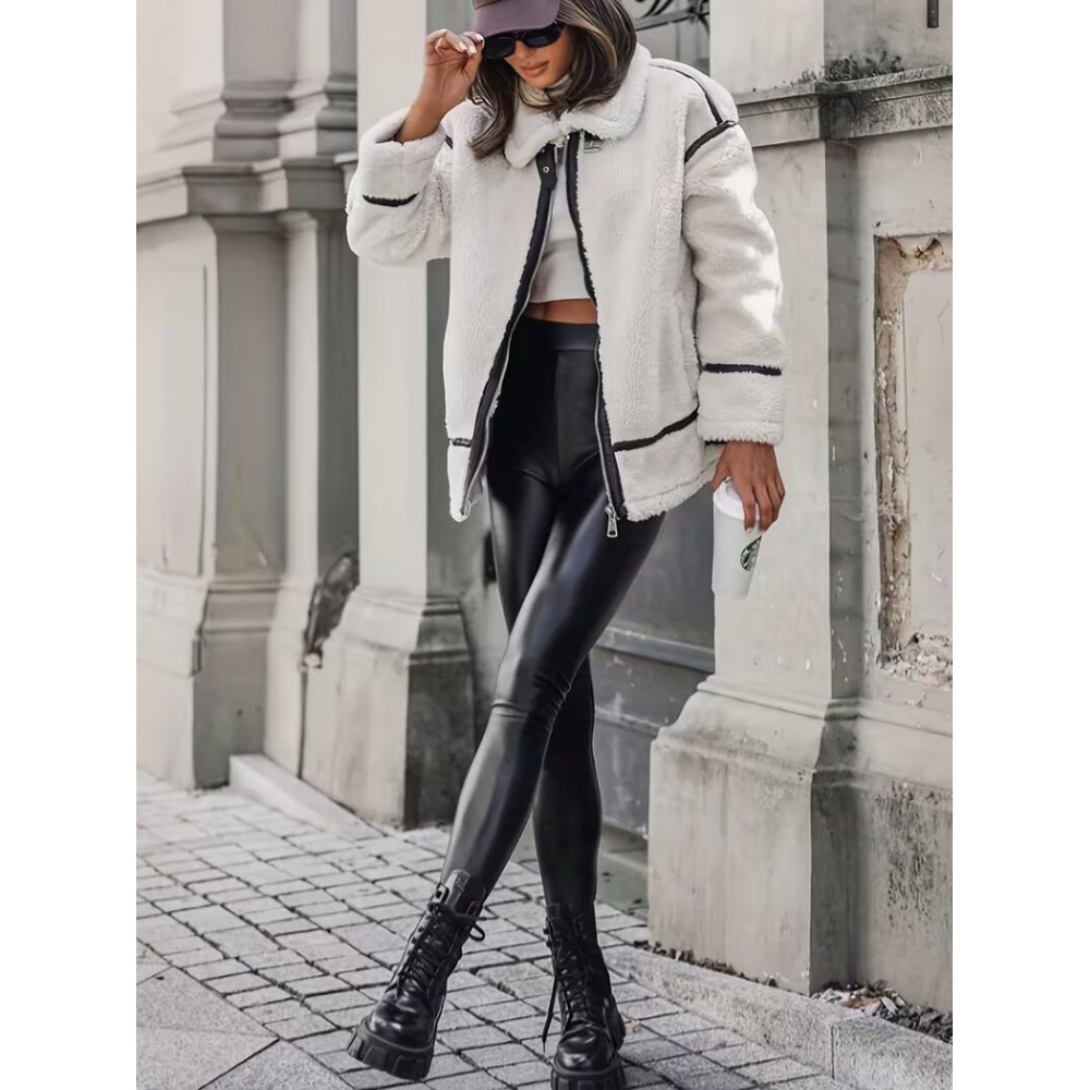 Fermuar Kapanışlı Beyaz Şık Motosiklet Ceketi…
