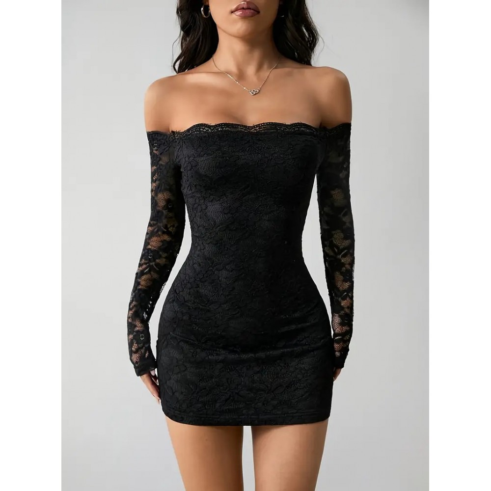 Asimetrik Yaka, Uzun Kollu, Fermuar Detaylı Siyah Elbise…