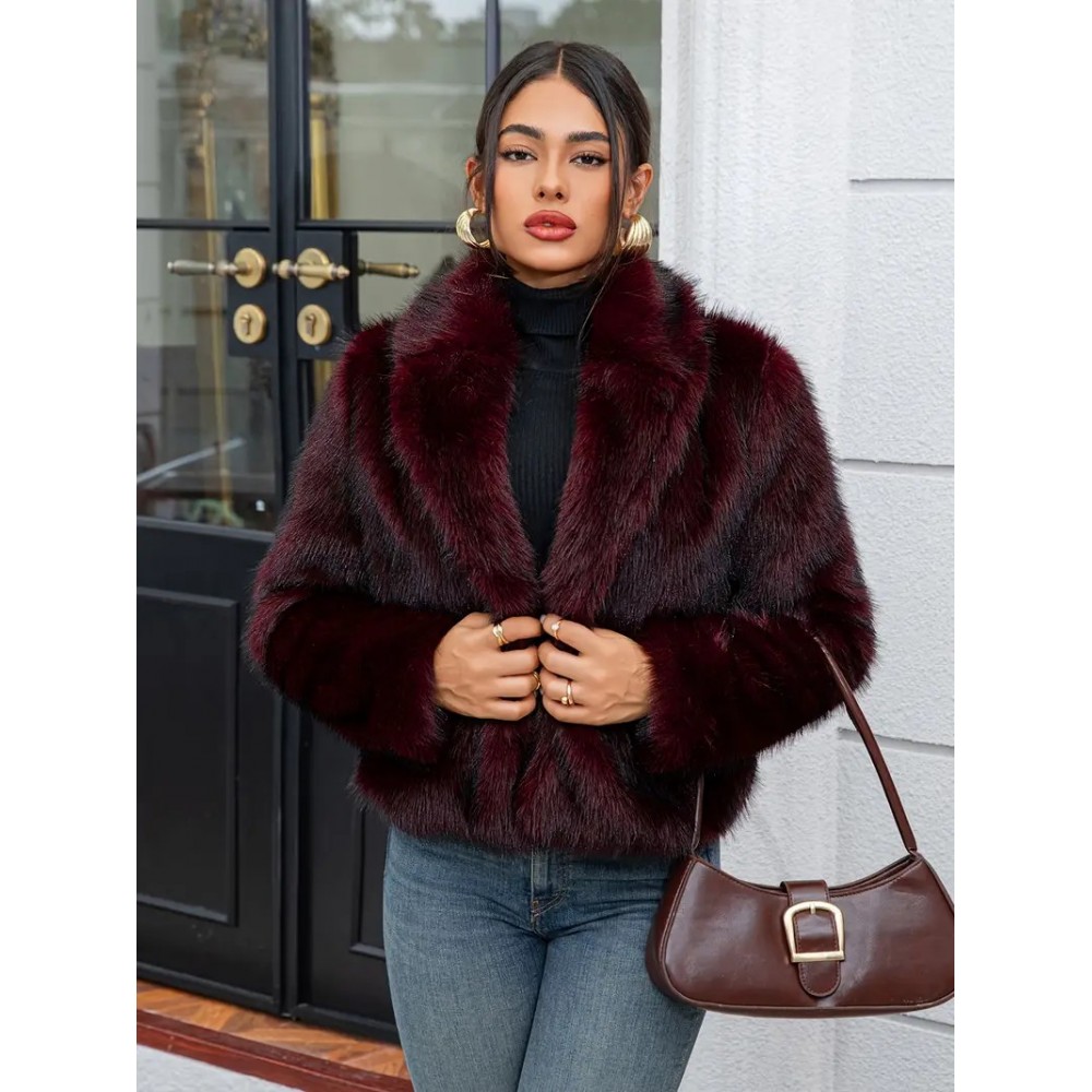 Koyu Kırmızı Suni Kürk Ceket 251023112452