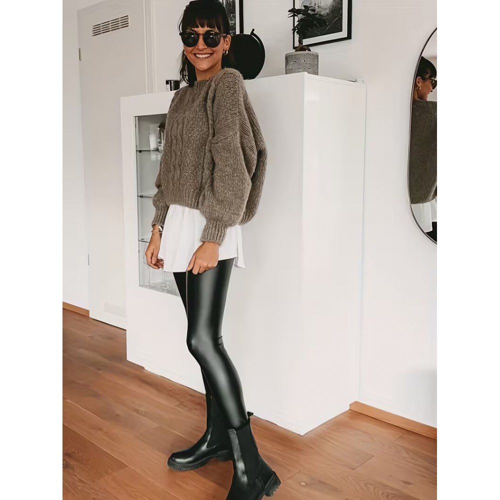 Yüksek Bel Suni Deri Tayt Pantolon…