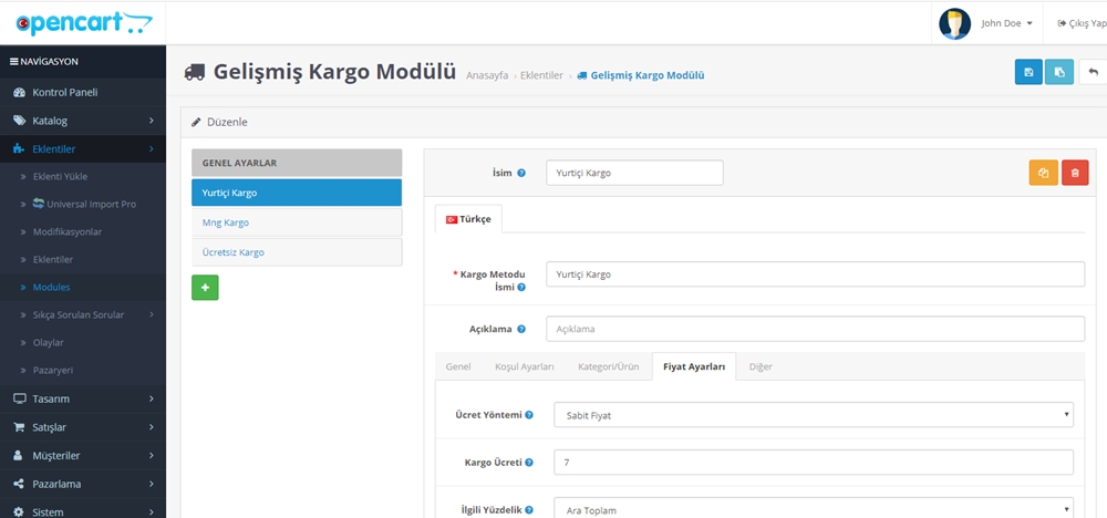 - Ürün Adı: Opencart Gelişmiş Kargo Modülü