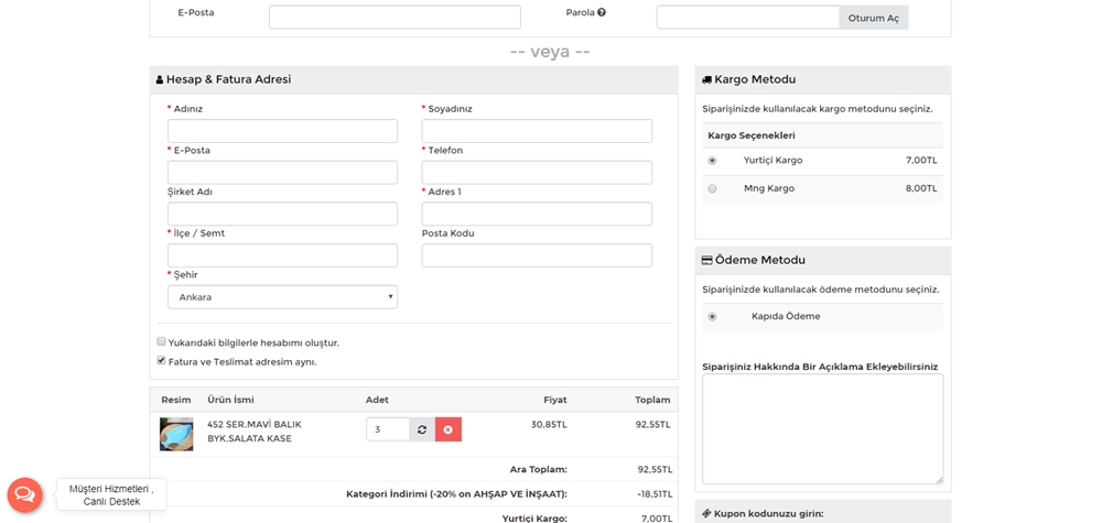 - Destek Hizmeti: 1 Gün Ücretsiz Destek