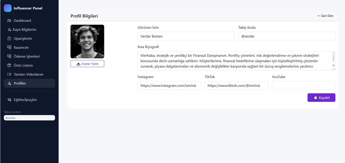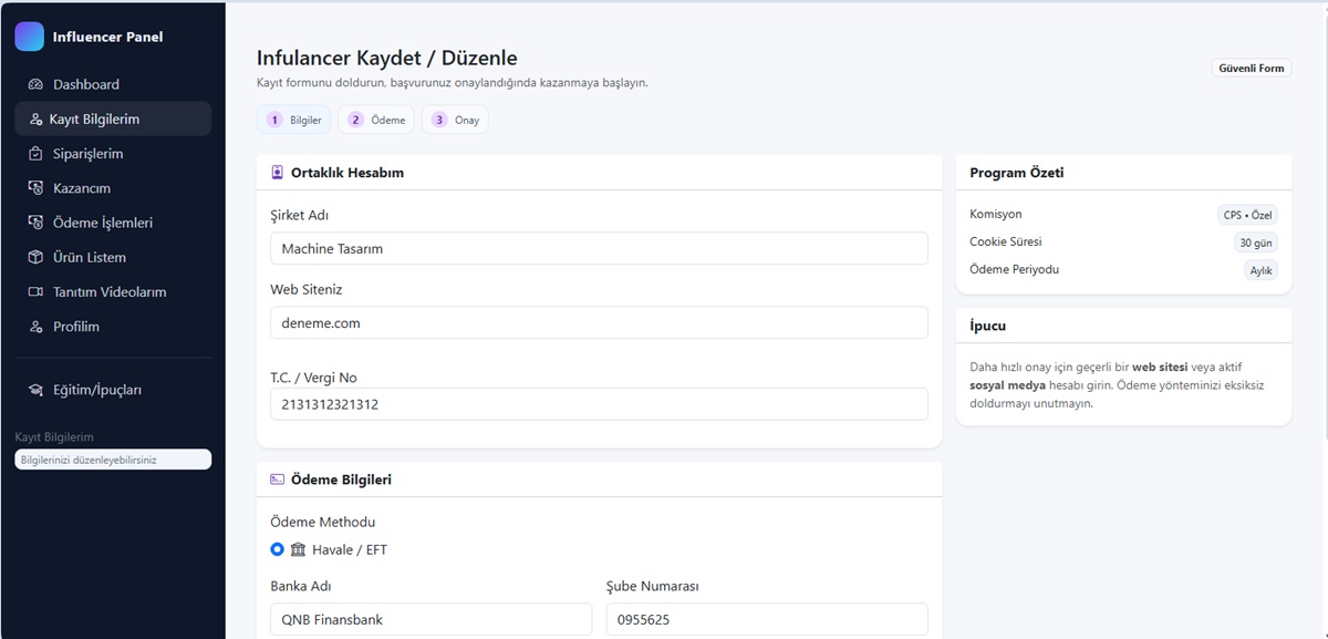 - Kayıt Ol – 1 dakikada başvur, kişisel link & kod oluştur.