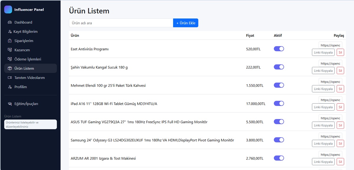 Sizler için Opencart alt yapılı sitenizde kullanabileceğiniz infulancer modülünü geliştirdik. Satış ortaklığı sistemini geliştirdik ve kullanabileceğiniz kolay kullanımlı infulancer modülünü hazır hale getirdik.