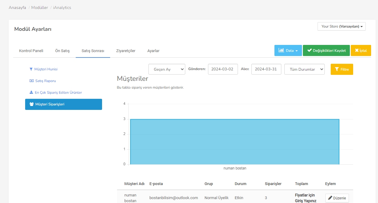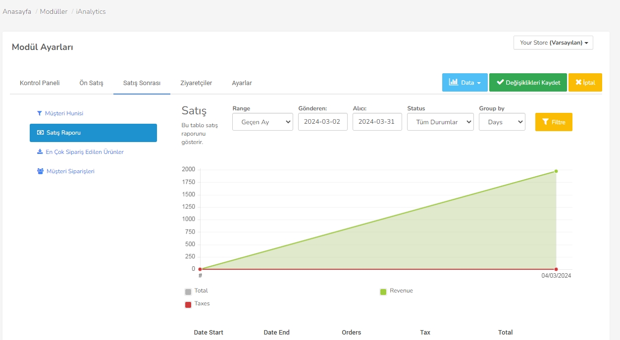 - Ürün Adı: Opencart iAnalytics Raporlama Modülü