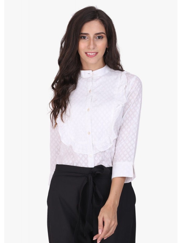 Katlamalı Kol Gömlek Beyazçiçekli - 3800.128.…