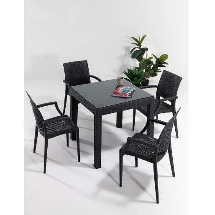 Novussi 90*90 Rattan Camlı Antrasit Masa Classi R0
