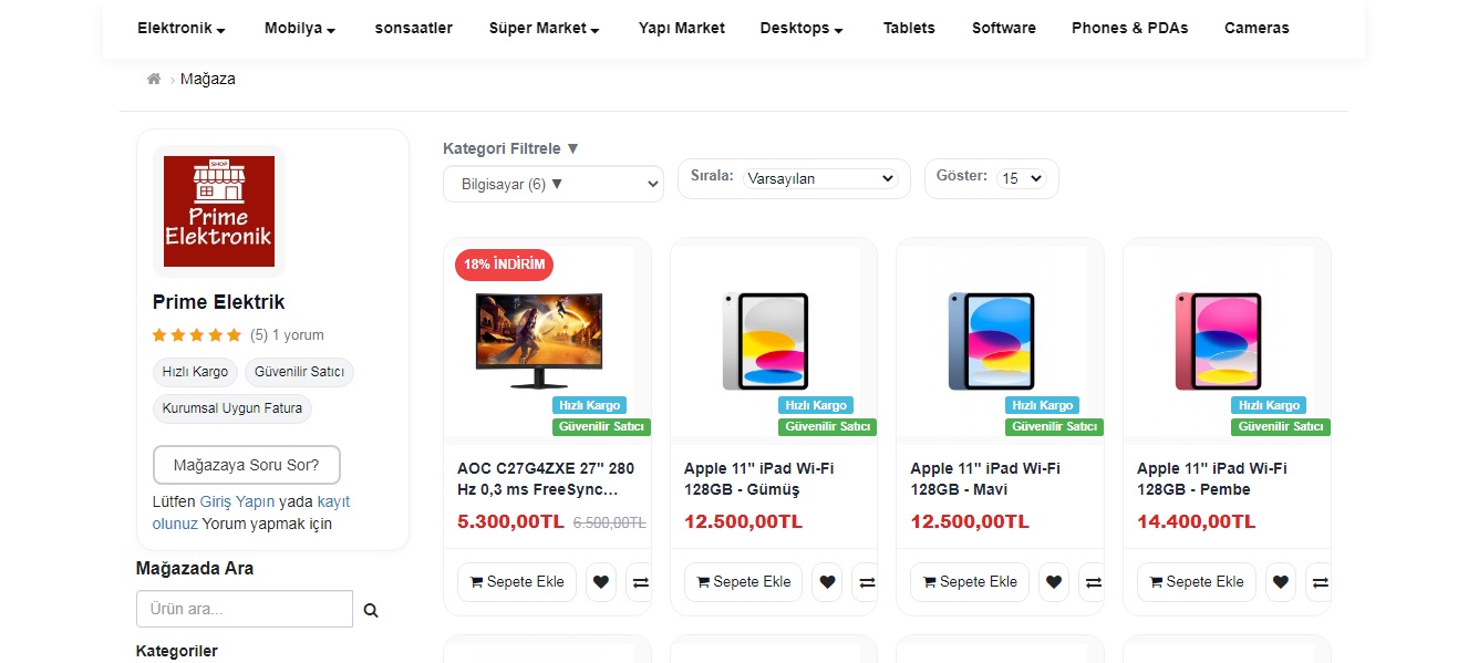 - Satıcı puanı ve değerlendirme sistemi sayesinde güvenilir mağazalar öne çıkar.