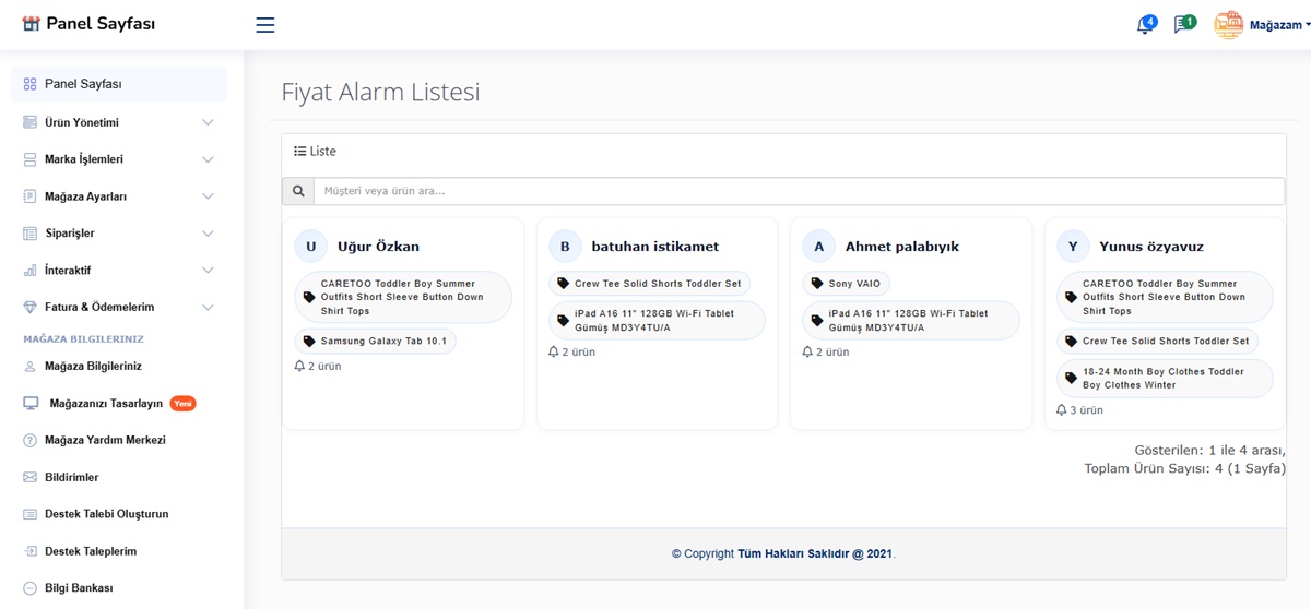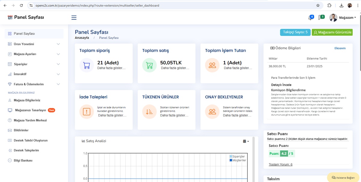 Satıcılar İçin Gelişmiş Yönetim Paneli