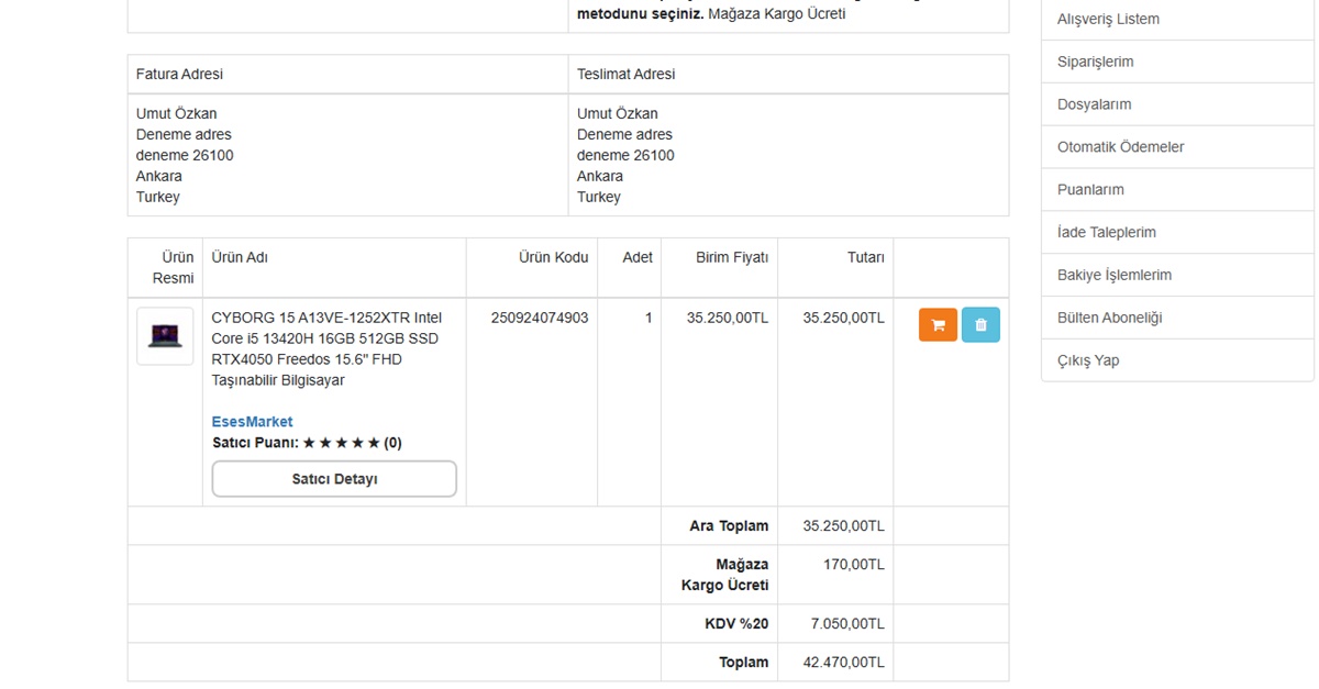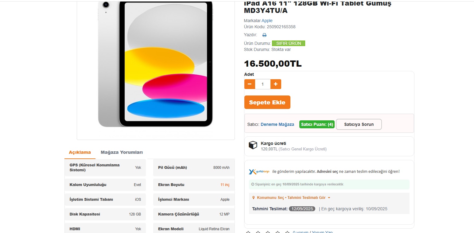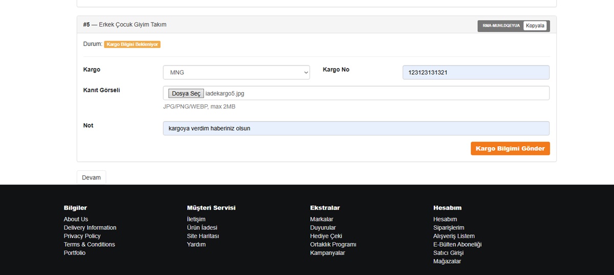 - Anlaşmalı kargo entegrasyonu ile müşteriler siparişlerini kolayca takip edebilir.