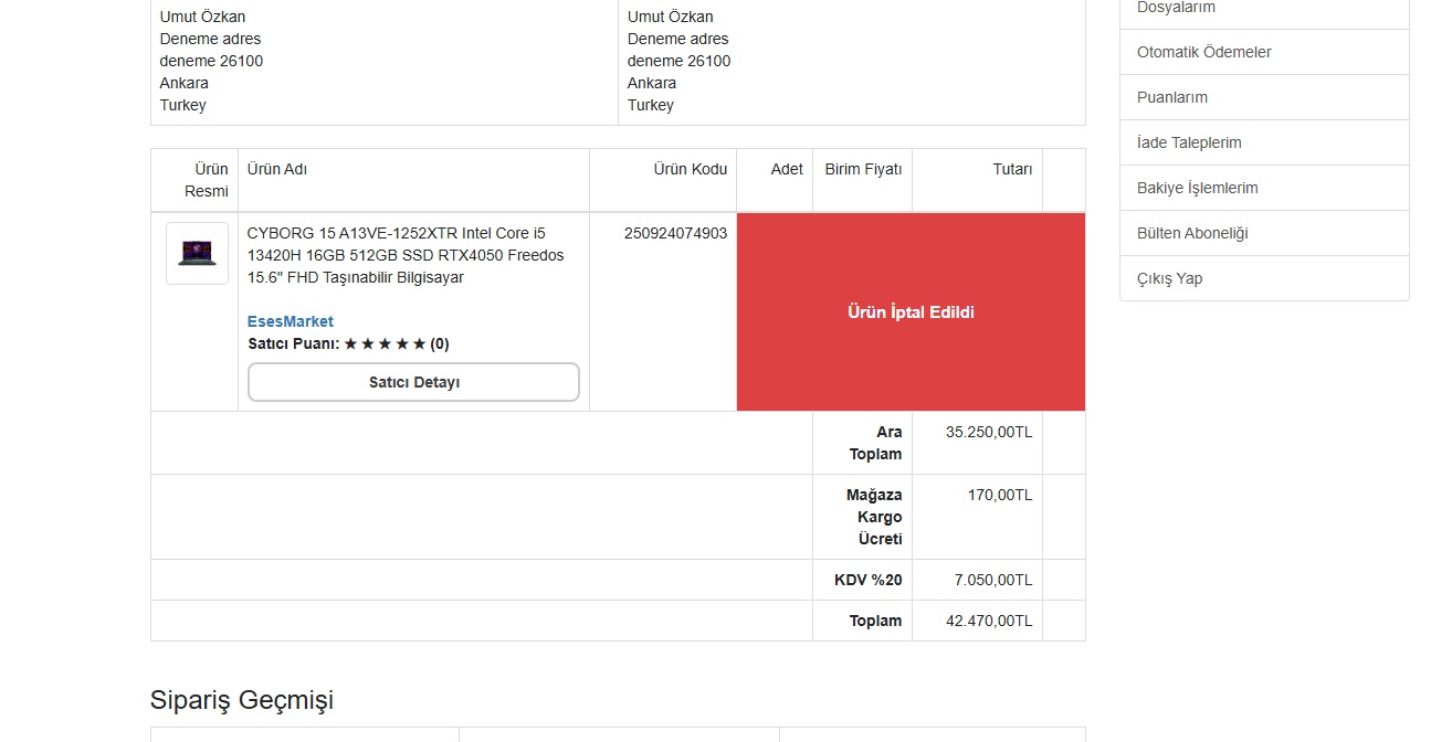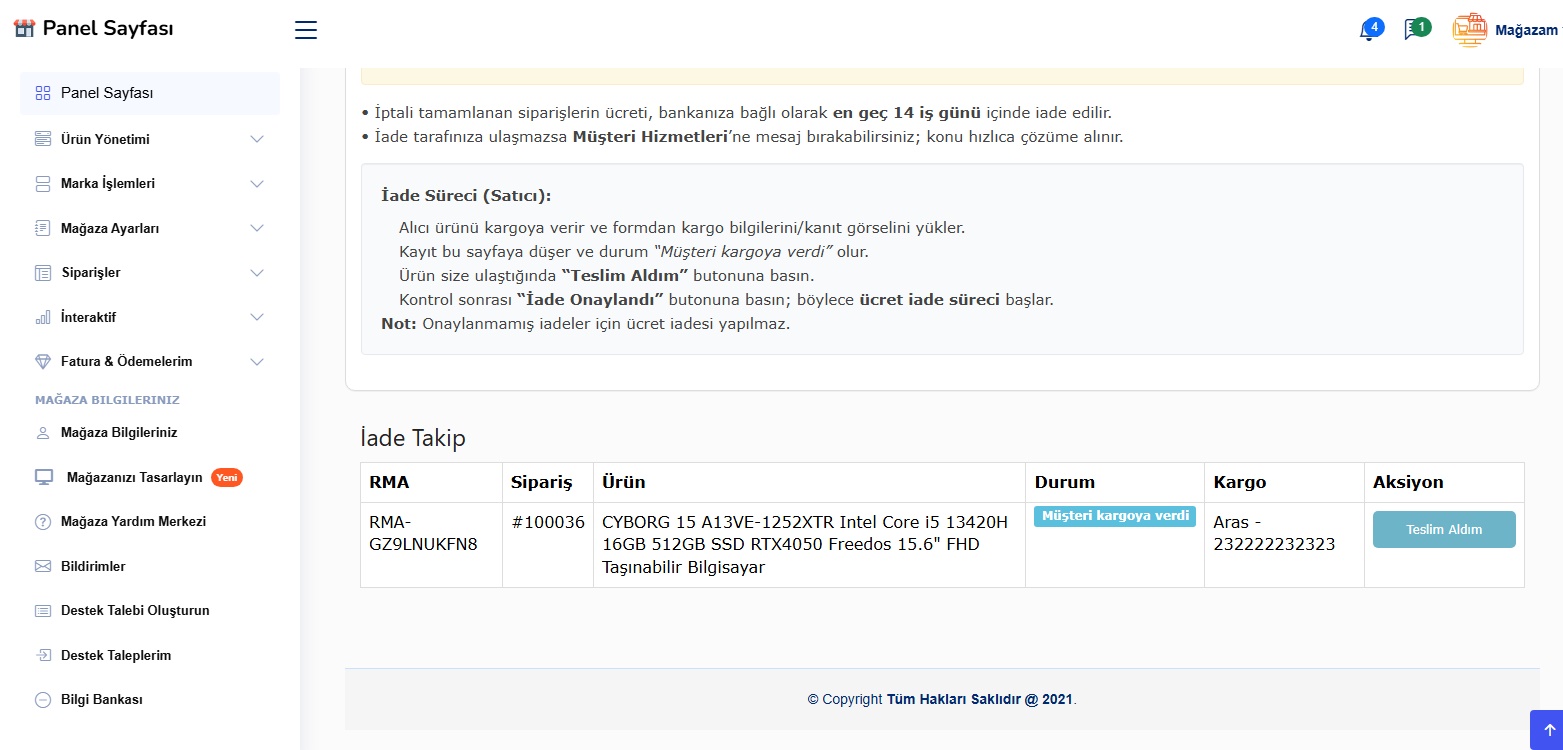 - Satıcı Mağaza İptal Sistemi Geliştirildi