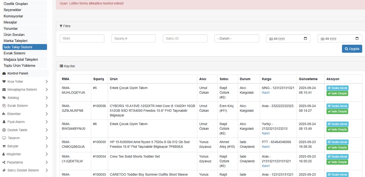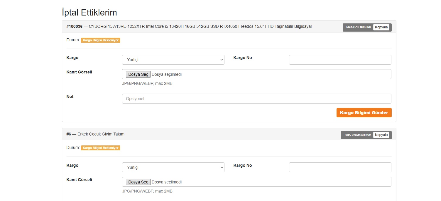 - Ürün iade sistemi (RMA) Geliştirildi
