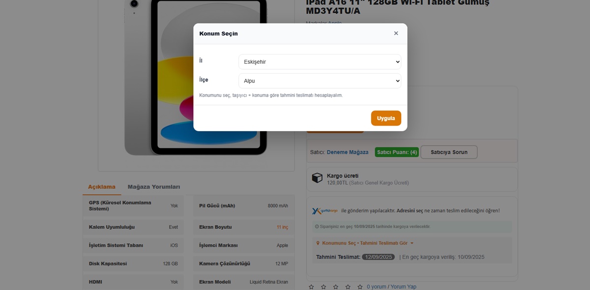 - Satıcılar, kendi kargo ayarlarını belirleyebilir.