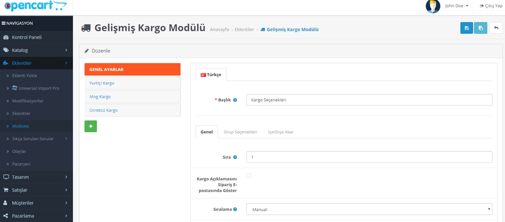 - Ürün Adı: Opencart Gelişmiş Kargo Modülü
