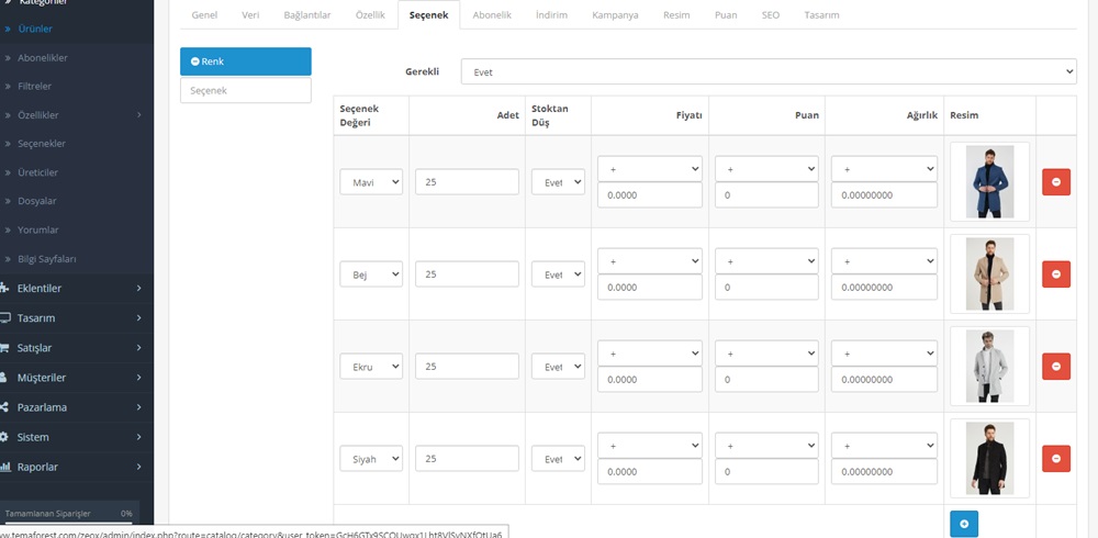 - Ürün Adı: Opencart Secenek Değişince Resim Değişmesi