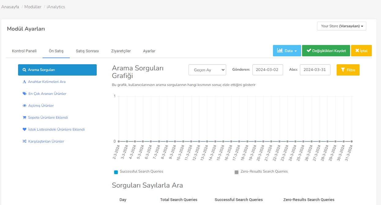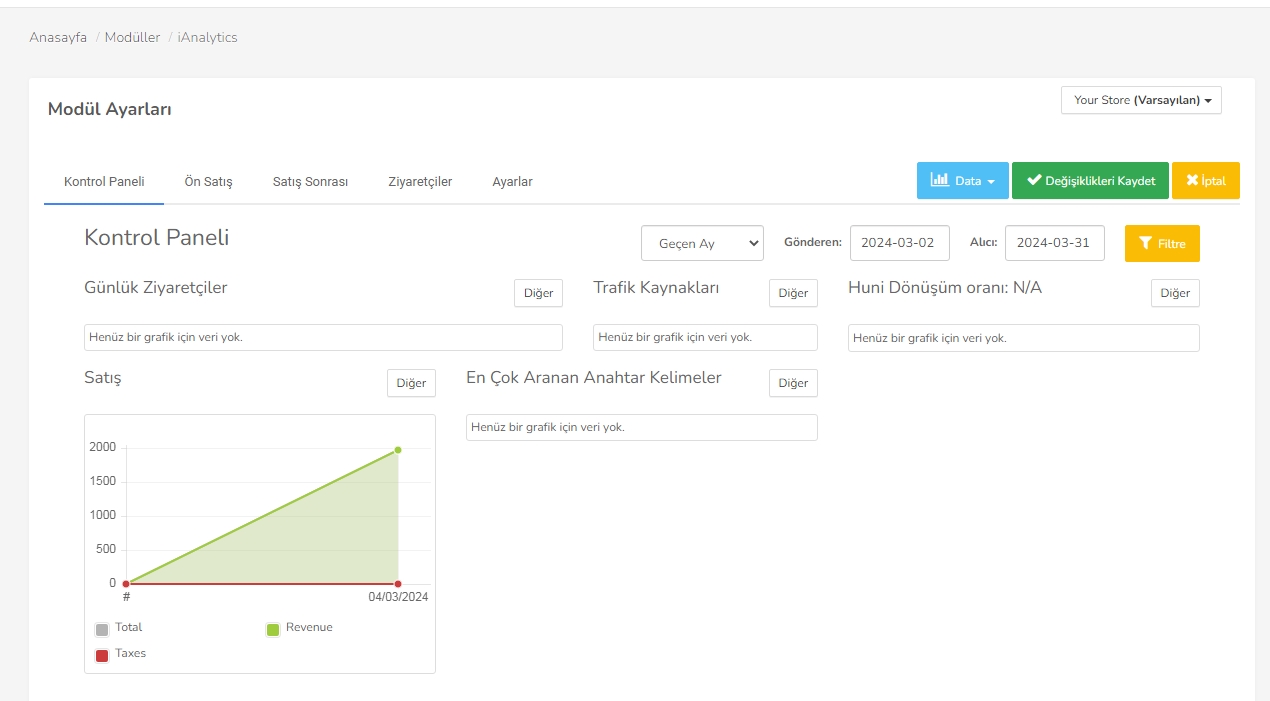 - Ürün Adı: Opencart iAnalytics Raporlama Modülü
